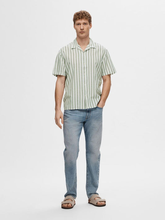 Chemise manches courtes mélange coton/lin SELECTED Rayé