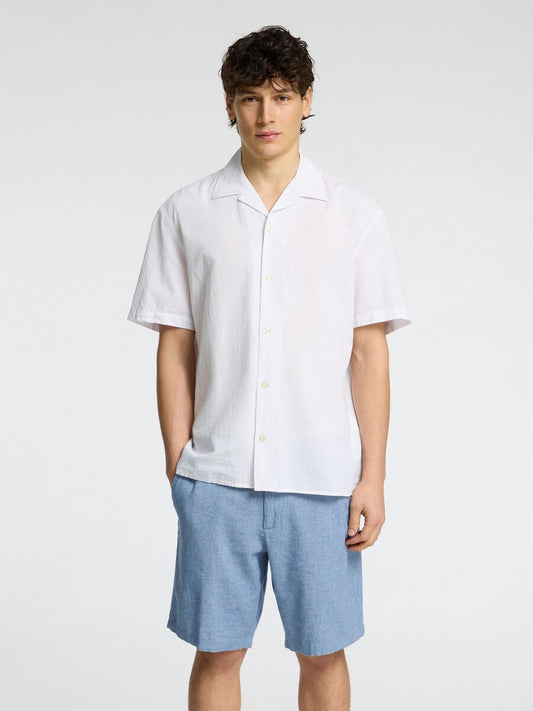 Chemise manches courtes mélange coton/lin SELECTED Blanc