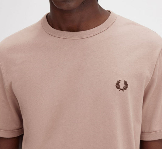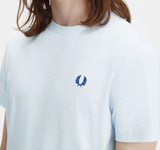 Tee shirt brodé Fred Perry col uni bleu ciel