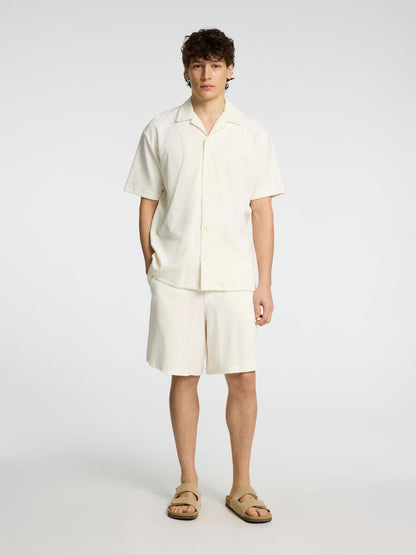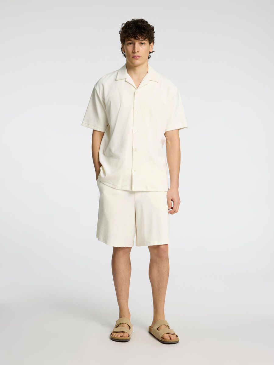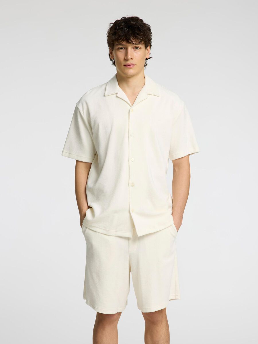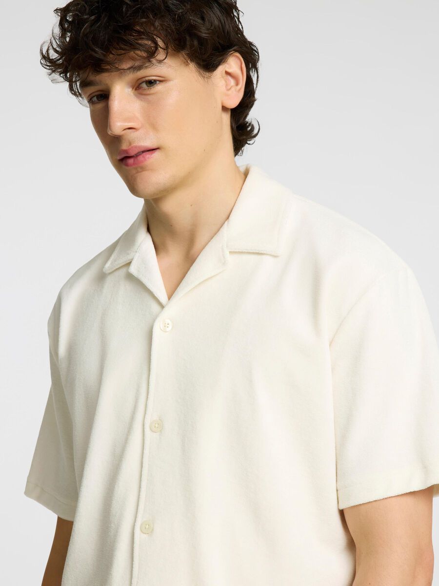 Adoptez l'esprit vacances avec cette chemise en tissu éponge. Fabriquée en 100 % coton, elle présente un col cubain décontracté. Portez-la avec un pantalon en lin et des sandales en cuir. - Col cubain - Boutonnage sur le devant - Manches courtes - Tissu éponge doux - Coupe décontractée