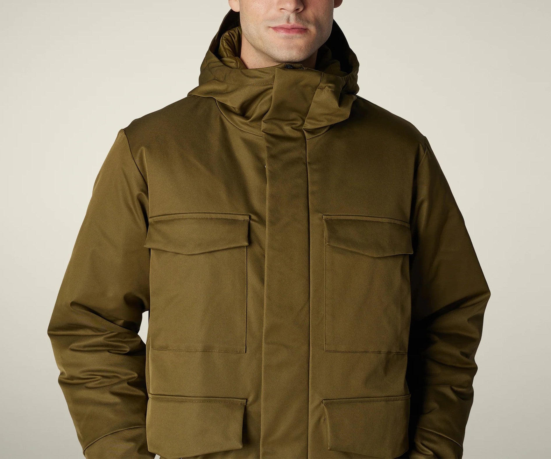 Inspirée de l’univers militaire dont elle propose de moderniser, la Parka pour homme modèle Nicolas assure confort thermique et isolation grâce à son rembourrage Recycled Plumtech® 100 % Animal Free. Pensée pour une fonctionnalité maximale, elle offre pas moins de sept poches : zippées, à rabat et intérieures. Sa capuche réglable, sa taille avec cordon de serrage, sa patte à boutons-pression, sa fermeture à glissière à double curseur et ses poignets intérieurs en lycra garantissent une protection optimale contre les éléments.